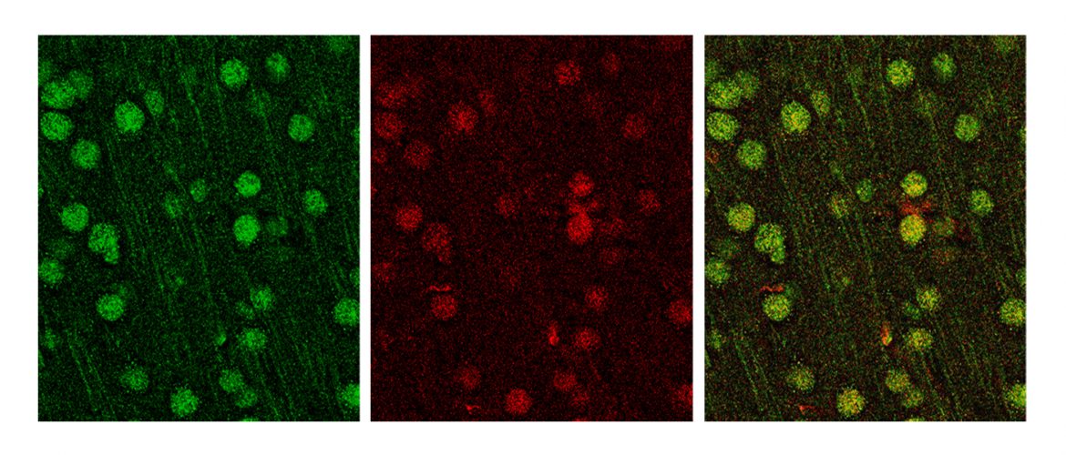 MVP immunostaining. MVP in green, neuronal marker SATB2 in red | Credit: Jacque Ip, Sur Laboratory, Picower Institute for Learning and Memory