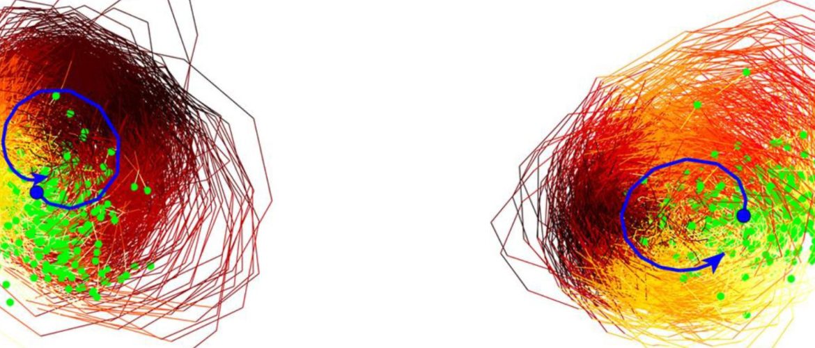 After the distraction, there was a rotating movement in subspace, as if the “birds” were circling back together after a disruption of their formation. In other words, Miller said, the circling seemed to represent the recovery of their activity state from the distraction.